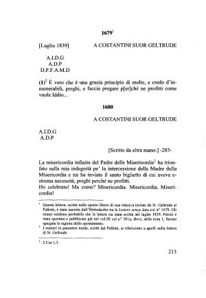 1 Questa lettera , scritta nello spazio libero di una missiva inviata da Sr . Geltrude al Pallotti , è stata inserita dall ’ Hettenkofer tra le Lettere senza data col n ° 1679 . Gli esami rendono probabile che la lettera sia stata scritta nel luglio 1839 . Perciò è stata spostata e pubblicata già nel volili col n ° 58la , dove , nella nota 1 , furono spiegate le ragioni dello spostamento .