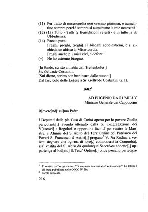 Poveri S . Francesco di Assisi [,] pregano12 V . Ptà Rndma a volersi degnare che ognuna di loro [,] componenti la Comunità [, sia ] vestita del S . Abito da qualunque Sacerdote addetto [,] appartenga al lod [ ato ] S . Terz ’ Ordine [,] onde possano partecipa