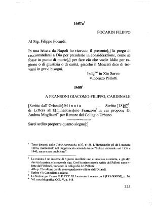 3 Le Notizie per l ’ anno M . D . CCC . XLI scrivono il nome con S ( FRANSONI ), p . 36 .