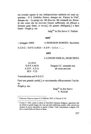 1 II testo n ° 1692 , scritto in latino al Sacerdote irlandese Hodgson , appartiene alle sei lettere in quella lingua che sono già state pubblicate quattro volte ; perciò non saranno di nuovo riprodotte in questo volume . Vedi l ’ annotazione a pagina Vili dove si parla delle sei lettere in latino .