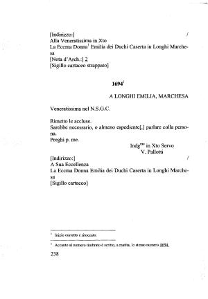 La Eccma Donna1 Emilia dei Duchi Caserta in Longhi Marchesa [ Nota d ’ Arch .:] 2 [ Sigillo cartaceo strappato ]