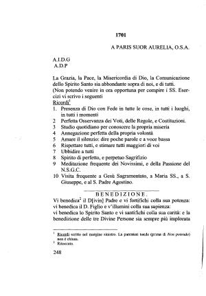 La Grazia , la Pace , la Misericordia di Dio , la Comunicazione dello Spirito Santo sia abbondante sopra di noi , e di tutti . ( Non potendo venire in ora opportuna per compire i SS . Esercizi vi scrivo i seguenti Ricordi1