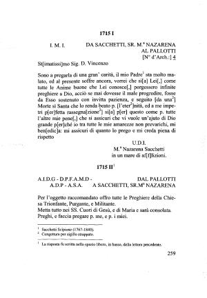 Sono a pregarla di una gran ’ carità , il mio Padre1 sta molto malato , ed al presente soffre ancora , vorrei che si [ a ] Lei [,] come tutte le Anime buone che Lei conoscef ,] porgessero infinite
