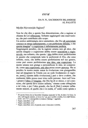 1 Di questa lettera da un Sacerdote Irlandese mancano la fine , la data e la firma . In alto , nell ’ angolo sinistro , si trova il n ° 22 , poi è scritto a matita , forse dall ’ Hettenkofer : Ad 1717 e stenografato in tedesco : Beilage = aggiunta .