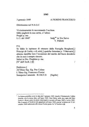 Ma il numero d ’ Archivio 45 appartiene all ’ anno 1849 , perché la lettera del 12 dicembre 1848 indirizzata allo stesso Fiorini porta il n ° d ’ Archivio 44 .