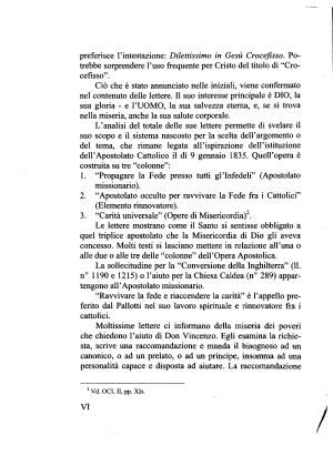 L ’ analisi del totale delle sue lettere permette di svelare il suo scopo e il sistema nascosto per la scelta dell ’ argomento o del tema , che rimane legata all ’ ispirazione dell ’ istituzione dell ’ Apostolato Cattolico il dì 9 gennaio 1835 . Quell ’ opera è costruita su tre “ colonne ”: 1 . “ Propagare la Fede presso tutti gl ’ infedeli ” ( Apostolato missionario ). 2 . “ Apostolato occulto per ravvivare la Fede fra i Cattolici ”