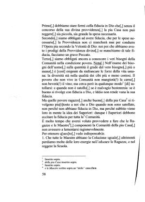 È molto tempo che averei voluto provvedere a fare che le Ragazze e le Maestre4 [,] componenti la Comunità della pia Casa [,] non avessero a lamentarsi ragionevolmente .