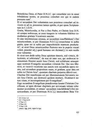 Et si secundum Dei voluntatem non possimus consolari ad invicem os ad os , possumus tamen spiritu , et per spem Scripturarum in C . I . D . N . Gratia , Misericordia , et Pax a Deo Padre , et Christo lesu D . N . sit semper nobiscum , ut omni tempore in voluntate fideliter custodiamus gratiam Vocationis sanctae .