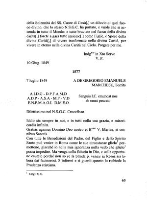 della Solennità del SS . Cuore di Gesù [,] un diluvio di quel fuoco divino , che lo stesso N . S . G . C . ha portato , e vuole che si accenda in tutto il Mondo : e tutte bruciate nel fuoco della divina carità [,] farete a gara tutte insieme [,] come Figlie , e Spose della divina Carità [,] di vivere trasformate nella divina Carità , per vivere in eterno nella divina Carità nel Cielo . Pregate per me .