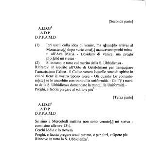 ( 1 ) Ieri uscii colla idea di venire , ma q [ uan ] do arrivai al Monastero [,] dopo varie cose [,] mancavano pochi minuti all ’ Ave Maria - Desidero di venire : ma preghi p [ oi ] ché mi riesca -