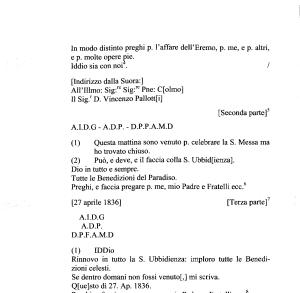 Q [ ue ] sto dì 27 . Ap . 1836 . Preghi , e faccia pregare p . me , mio Padre , e Fratelli ecc . 8 9