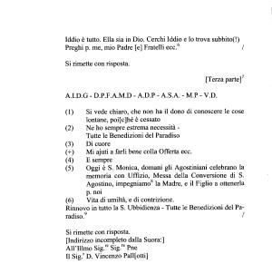 Tutte le Benedizioni del Paradiso ( 3 ) Di cuore (+) Mi ajuti a farli bene colla Offerta ecc . ( 4 ) E sempre ( 5 ) Oggi è S . Monica , domani gli Agostiniani celebrano la memoria con Uffìzio , Messa della Conversione di S . Agostino , impegniamo8 la Madre , e il Figlio a ottenerla