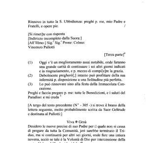 [ A tergo del testo precedente ( N ° - 305 - ) si trova il brano della lettera seguente , molto probabilmente scritta da Suor Geltrude e destinata al Pallotti :]