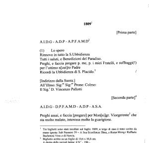 Placido viene menzionata “ l ’ ubbidienza del discepolo ”.