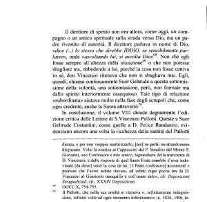 fosse sempre all ’ altezza della situazione69 o che non potesse sbagliare ma , obbedendo a lui , purché la cosa non fosse cattiva in sé , don Vincenzo riteneva che non si sbagliava mai . Egli , quindi , chiama continuamente Suor Geltrude a questa sottomissione della volontà , una sottomissione , però , non formale ma dallo spirito interiormente ossequioso . Tale tipo di relazione « subordinata » aiutava molto nella fase degli scrupoli che , come ogni credente , anche la Suora attraverso .