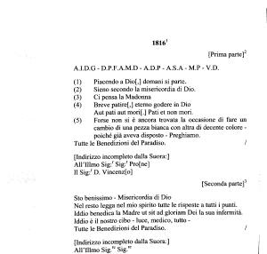 [ Indirizzo incompleto dalla Suora :]
