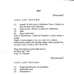 Tutte le Benedizioni , e saluti del Paradiso a tutte [,] adesso e sempre Preghi , e faccia pregare p . me , e p . i miei vivi , e defonti