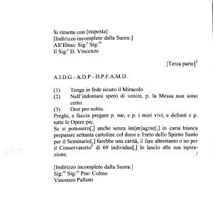 [ Indirizzo incompleto dalla Suora :] Sig : re Sig : re Pne : Colmo