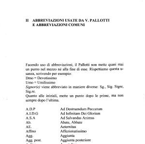 Facendo uso di abbreviazioni , il Ballotti non mette quasi mai un punto nel mezzo né alla fine di esse . Rispettiamo questa u- sanza , scrivendo per esempio :
