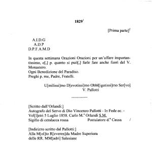 Alla M [ ol ] to R [ everen ] da Madre Superiora delle RR . MM [ adri ] Salesiane