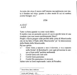Preghi e faccia pregare onde profitti della visita di Misericordia che mi ha fatto il Padre delle Misericordie3 pe ’ la intercessione