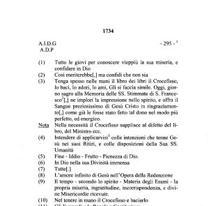Umanità ( 5 ) Fine - Iddio - Frutto - Pienezza di Dio . ( 6 ) In Dio nella sua Divinità immensa ( 7 ) Tutte [.] ( 8 ) L ’ amore infinito di Gesù nell ’ Opera della Redenzione ( 9 ) Il tempo - secondo lo spirito - Materia degli Esami - la propria miseria , ingratitudine , incorrispondenza , e divine Misericordie ricevute . ( 10 ) Nel tenere in mano il Crocefìsso e baciarlo ( 11 ) Gli Evangeli e le Regole e Costituzioni ( 12 ) Ciascun ’ Ordine dei Santi , e Coro Angelico
