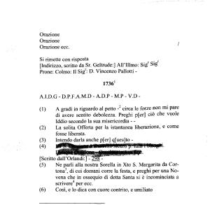 4 Vd . “ Novena a S . Margarita da Cortona / Autografo del Ven . Vincenzo Pallotti ” ( OOCC XIII 1408-1477 , stampato in Torino da Marietti nel 1843 ). La lettera