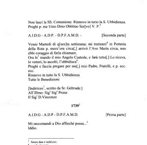 Non lasci la SS . Comunione . Rinnovo in tutto la S . Ubbidienza .
