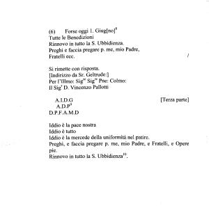 Per e qualche segno dell ’ inizio . Come sempre , la Suora ha tagliato via tutta la sua lettera indirizzata al Pallotti .