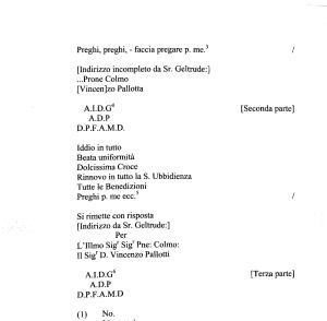 [ Indirizzo incompleto da Sr . Geltrude :] ... Prone Colmo [ Vincen ] zo Palletta
