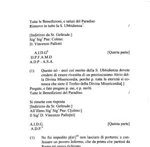 ( 1 ) Questo nò - anzi col merito della S . Ubbidienza dovete credere di essere rivestita di un preziosissimo Abito della Divina Misericordia , perché p . tutta la eternità si conosca che siete il Trofeo della Divina Misericordia [.] Pregate , e fate pregare p . me , e p . molti .