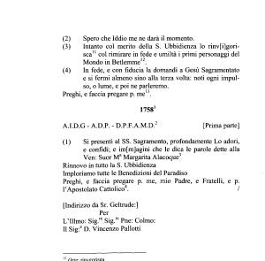 13 Dopo le ultime parole del Pallotti , la carta del biglietto è stata tagliata . Mancano firma , data ed indirizzo .