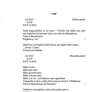 [ Indirizzo incompleto dalla Suora , per taglio della carta :] .... Prone : Colmo : [ Vincenz ] o Palletta