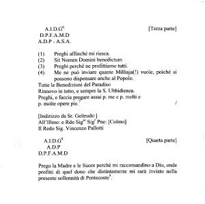 ( 1 ) Preghi affinché mi riesca . ( 2 ) Sit Nomen Domini benedictum ( 3 ) Preghi perché ne profittiamo tutti . ( 4 ) Me ne può inviare quante Milliaja ( I ) vuole , poiché si possono dispensare anche al Popolo .