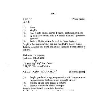 ( 1 ) Preghi perché vi si aggiungano dei zeri in buon numero in proporzione dei bisogni dei poverelli di G . C . ( 2 ) Intendo di fare tutto adesso e sempre . ( 3 ) Intendo rinnovarla adesso e sempre