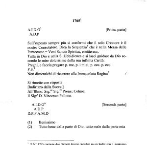 1 II N ° 1765 contiene due biglietti diversi , incollati su un foglio con il medesimo numero e con l ’ annotazione : “ Nr 5 . Esibito dal [ Sig .] Lorenzo Pieroni di Velletri ” ( vd . OCL VI p . 356 ).