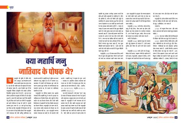 महार्षि मनु इसका उल्लेख अवश्य करतदे कि कौनvसी जाति ब्राह्णों सदे संबंधित है, कौन सी क्तत्यों सदे, कौन सी ्वै्यों और शूद्रों सदे समबंतधत हैं । इसका मतलब हुआ कि स्वयं को जनम सदे ब्राह्ण या उच्च जाति का माननदे ्वालों के पास इसका कोई प्रमाण नहीं है । जयािा सदे जयािा ्वदे इतना बता सकतदे हैं कि कुछ पीतढ़यों पहलदे सदे उनके पू्वमाज स्वयं को ऊंची जाति का कहलातदे आए हैं । ऐसा कोई प्रमाण नहीं है कि सभयता के आरंभ सदे ही यह लोग ऊंची जाति के थदे । जब ्वह यह साबित नहीं कर सकतदे तो उनको यह कहनदे का कया अधिकार है कि आज जिनहें जनमना शूद्र माना जाता है, ्वह कुछ पीतढ़यों पहलदे ब्राह्ण नहीं थदे? और स्वयं जो अपनदे को ऊंची जाति का कहतदे हैं ्वदे कुछ पीतढ़यों पहलदे शूद्र नहीं थदे?