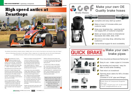 Brake Hoses Make your own OE Quality brake hoses CEF 1/8 SAEJ1401 Complete and easy start-up system Make a hose in 5 minutes while your customer waits Keep your inventory low - opening stock can supply 90% of customer enquiries Made up hoses conform to International Standards ISO 3996, SAE J1401 Become a one-stop shop, attracting new customers Full technical support & stock availability Make your own brake pipes Vice-mounted professional flaring tool Easy to use - make a pipe in 2 minutes No bending tool required - easy for fitter to bend while installing Fast return on investment Brake Tube Flaring Tool Opening stock caters for 95% of brake pipes in SA (consists of 3/16” pipe and fittings) Brake Hose & Component Supplies (Pty) Ltd. Tel: 0861-776-675 (Int:+27 12 803-0201) E-mail: info@brakehose.co.za