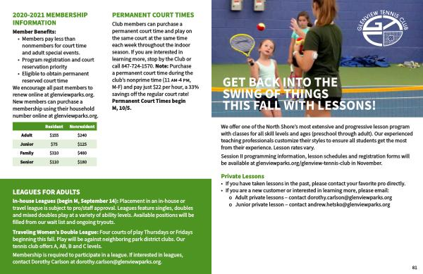Membership is required to participate in a league . If interested in leagues , contact Dorothy Carlson at dorothy . carlson @ glenviewparks . org .