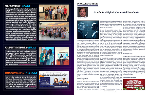 Besides the undeniable eeriness of AIenabled immortality, griefbots present a plethora of ethical and legal challenges about what happens to your digital data post-mortem. For example, who owns and has control over your digital footprint? An overriding concern is the potential for personal information to be misused through griefbots by instructing the bot to do or say things contrary to the decedent’ s known intentions. Other than the obvious manipulation of the decedent’ s finances, griefbots can be exploited to fulfill fantasies or create pornography. Current regulations governing AI do not adequately address challenges related to potential misuse of the data of the deceased.
