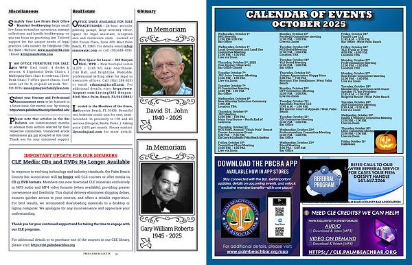 Announcement news to be featured in a future issue. Get started now by visiting: https:// www. palmbeachbar. org / classified-ads /