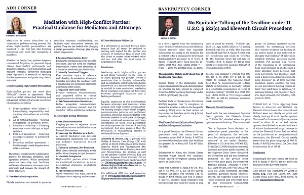 In a direct appeal from the bankruptcy court to the Eleventh Circuit, the Eleventh Circuit recently ruled that equitable tolling does not apply to the deadline for a creditor to file a complaint to determine dischargeability pursuant to 11 U. S. C. § 523( c). TL90108 LLC v. Ford, Case No. 21- 10456, 2025 U. S. App. LEXIS 20326 *,-- F. 4th--, 2025 WL 2304512( Aug. 11, 2025).