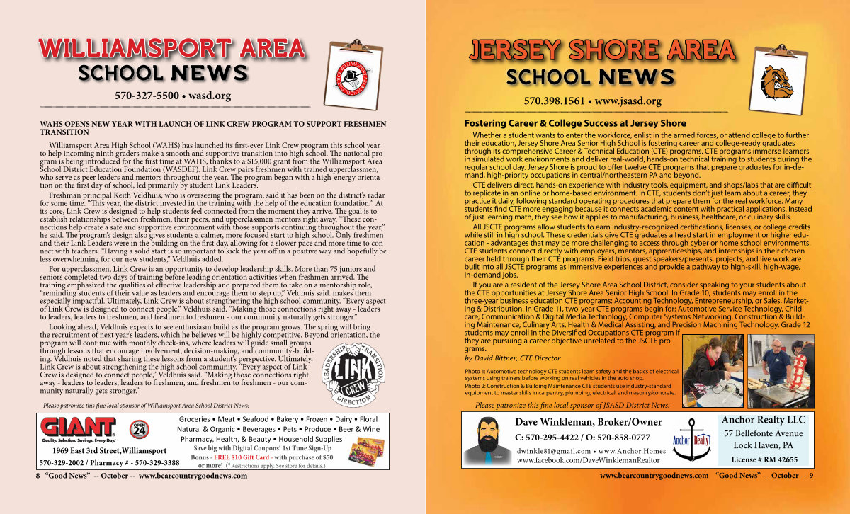 Williamsport Area High School( WAHS) has launched its first-ever Link Crew program this school year to help incoming ninth graders make a smooth and supportive transition into high school. The national program is being introduced for the first time at WAHS, thanks to a $ 15,000 grant from the Williamsport Area School District Education Foundation( WASDEF). Link Crew pairs freshmen with trained upperclassmen, who serve as peer leaders and mentors throughout the year. The program began with a high-energy orientation on the first day of school, led primarily by student Link Leaders.