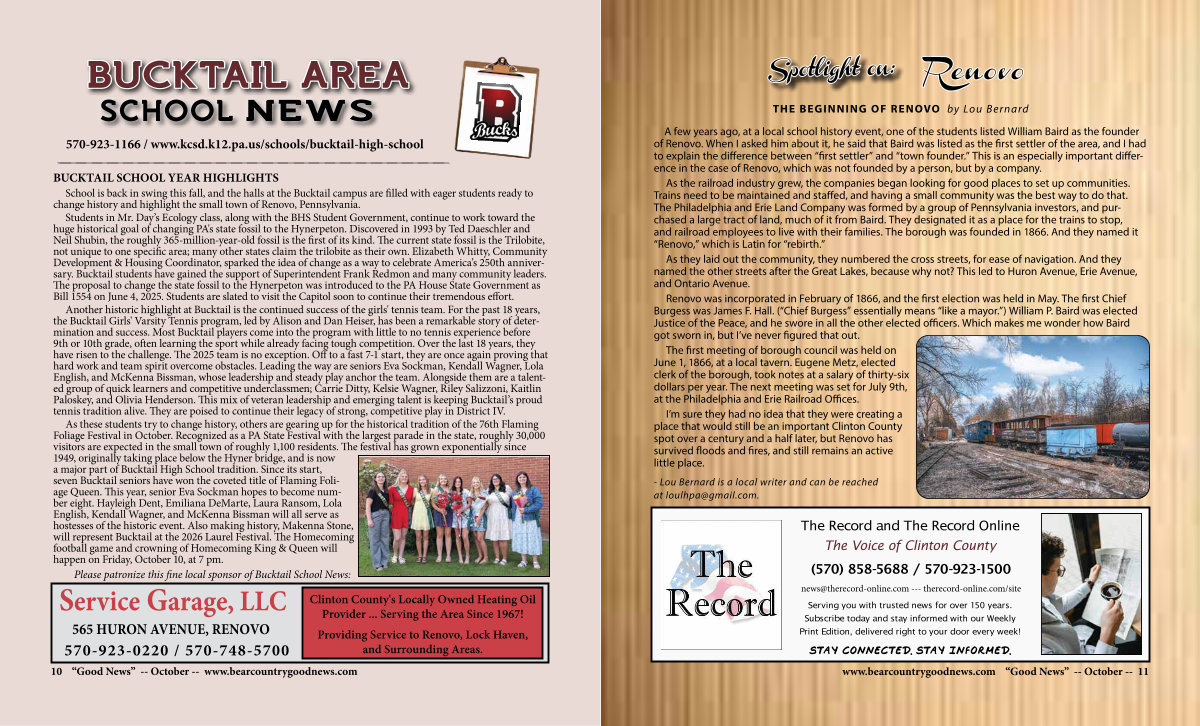 School is back in swing this fall, and the halls at the Bucktail campus are filled with eager students ready to change history and highlight the small town of Renovo, Pennsylvania.