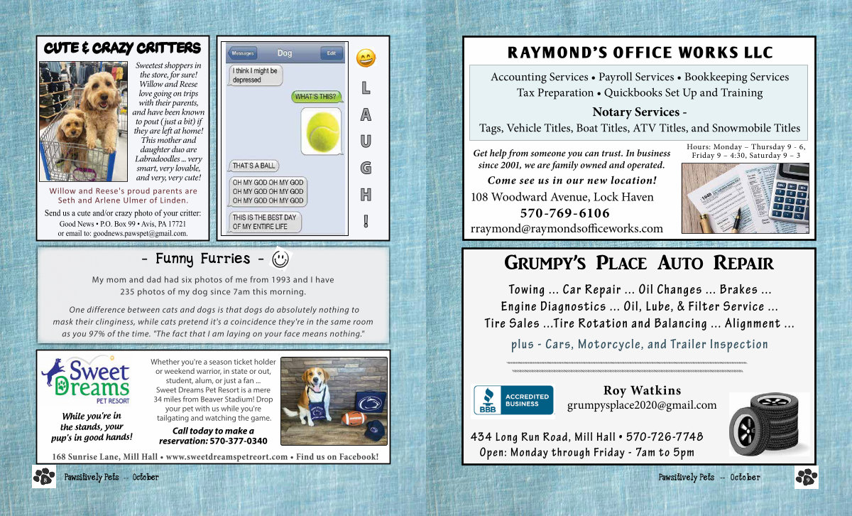 168 Sunrise Lane, Mill Hall • www. sweetdreamspetreort. com • Find us on Facebook!