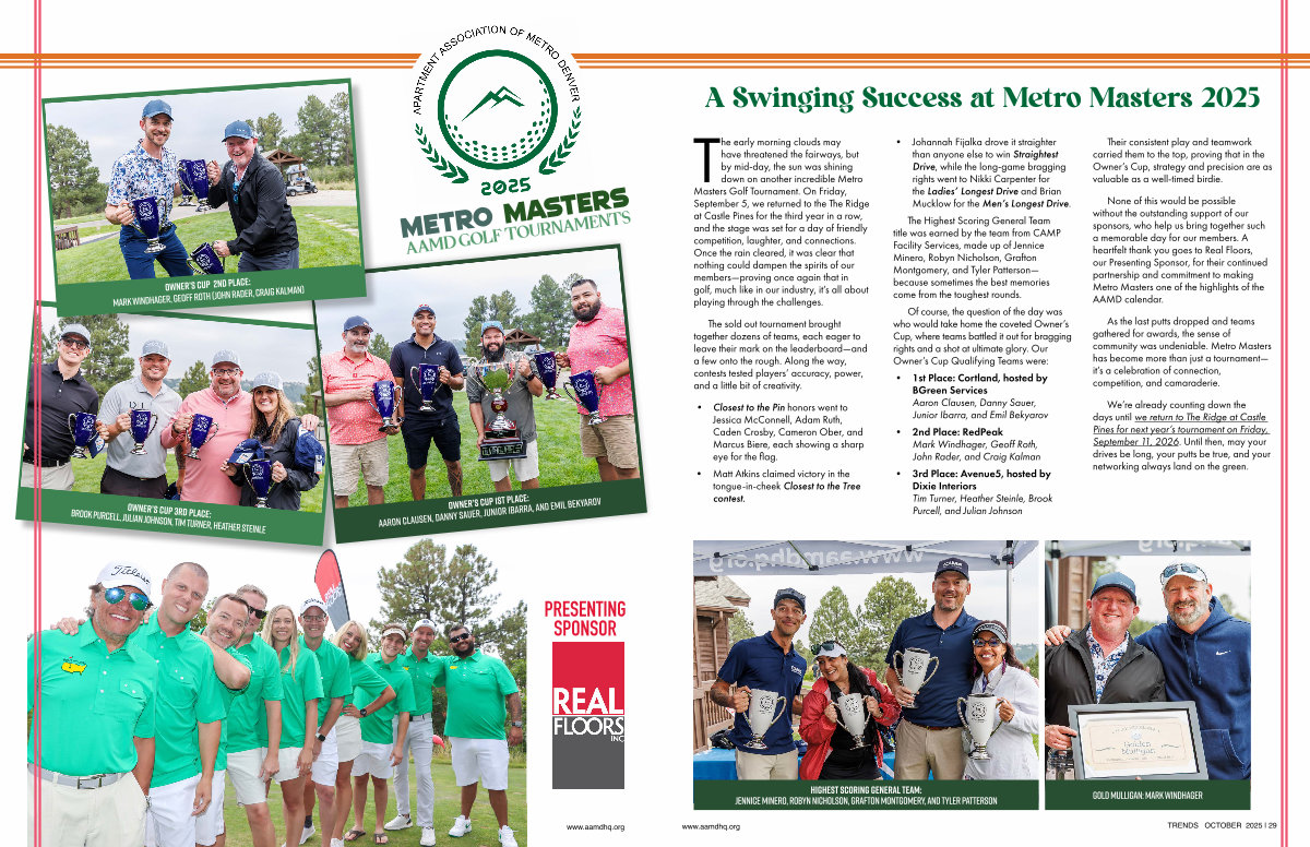 The early morning clouds may have threatened the fairways, but by mid-day, the sun was shining down on another incredible Metro Masters Golf Tournament. On Friday, September 5, we returned to the The Ridge at Castle Pines for the third year in a row, and the stage was set for a day of friendly competition, laughter, and connections. Once the rain cleared, it was clear that nothing could dampen the spirits of our members— proving once again that in golf, much like in our industry, it’ s all about playing through the challenges.