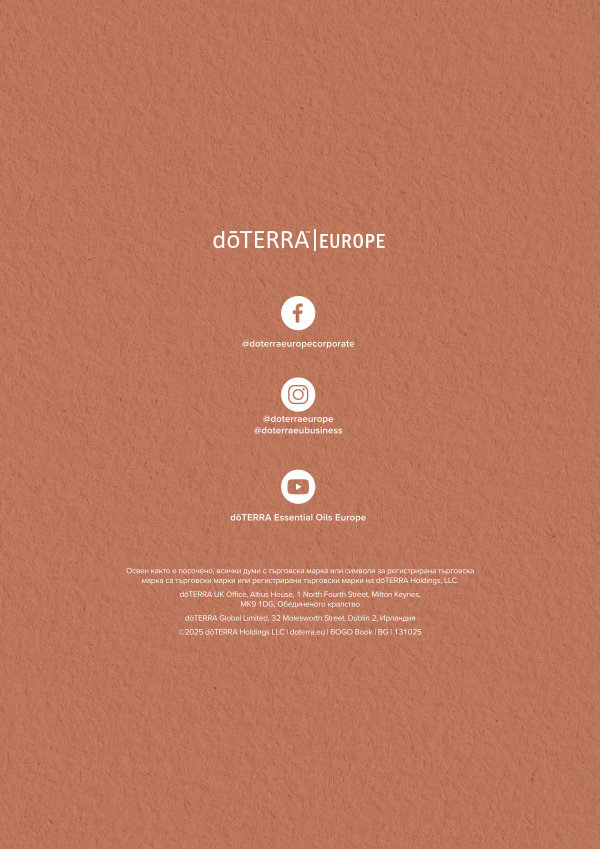 dōTERRA Global Limited, 32 Molesworth Street, Dublin 2, Ирландия © 2025 dōTERRA Holdings LLC | doterra. eu | BOGO Book | BG | 131025
