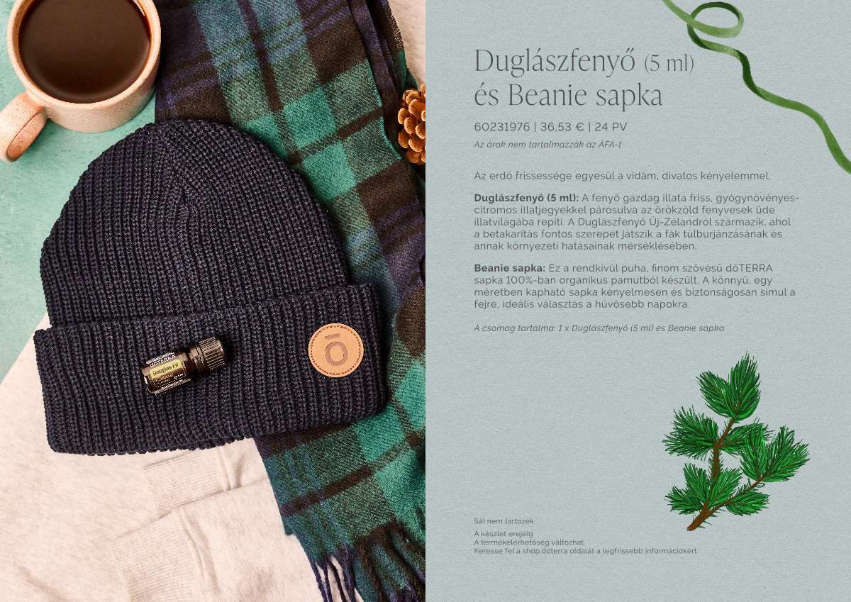 A csomag tartalma: 1 x Duglászfenyő( 5 ml) és Beanie sapka