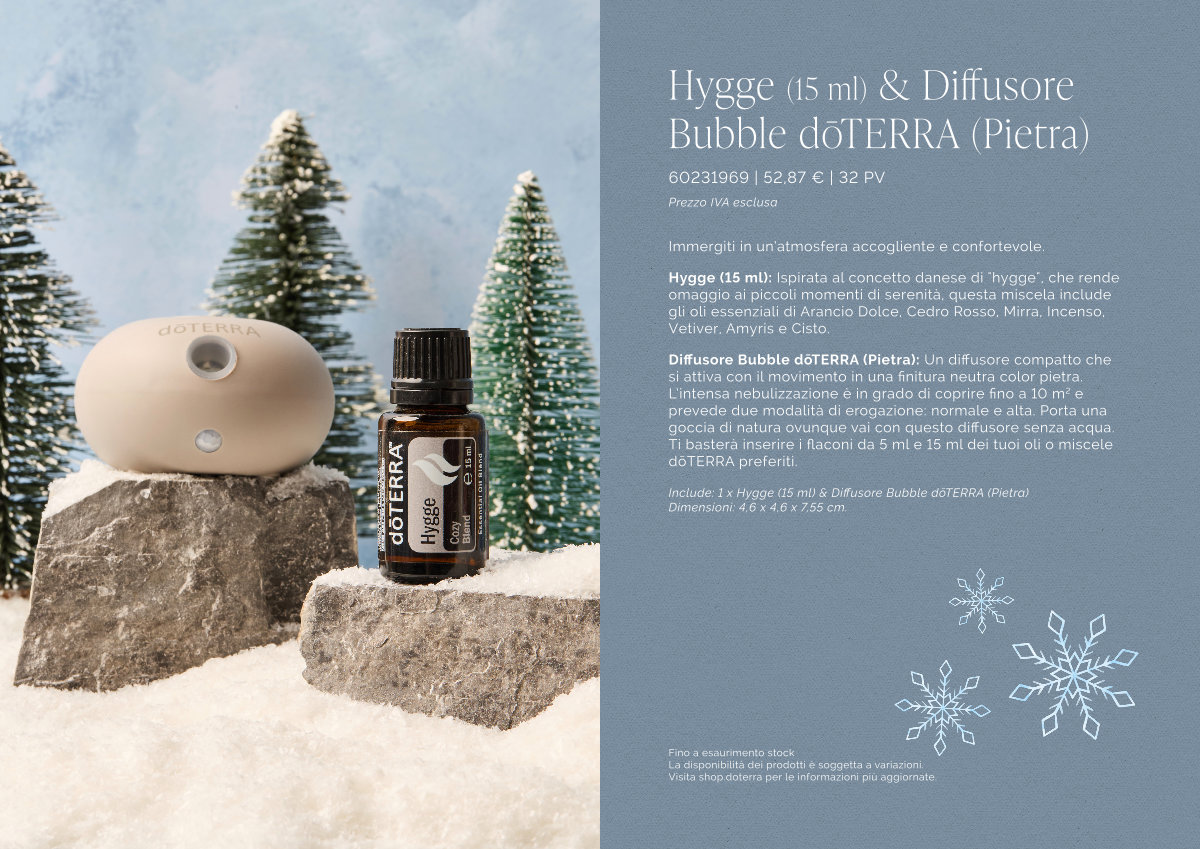 Hygge( 15 ml) & Diffusore Bubble dōTERRA( Pietra)