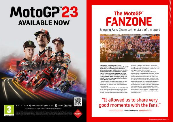 MotoGP™23 © 2023 Milestone S . r . l . Published by Milestone S . r . l . Developed by Milestone S . r . l . All rights reserved . Copyright © 2023 Dorna Sports S . L . © 2023 Sony Interactive Entertainment LLC . “ PlayStation Family Mark ”, “ PlayStation ”, “ PS4 logo ” and PS5 logo ” are registered trademarks or trademarks of Sony Interactive Entertainment Inc .”. Nintendo Switch is a trademark of Nintendo . All other trademarks are properties of their respective owners . To use the Online Service , where it exists , the user must be 13 years of ageor older . By using the Online Service , the user confirms